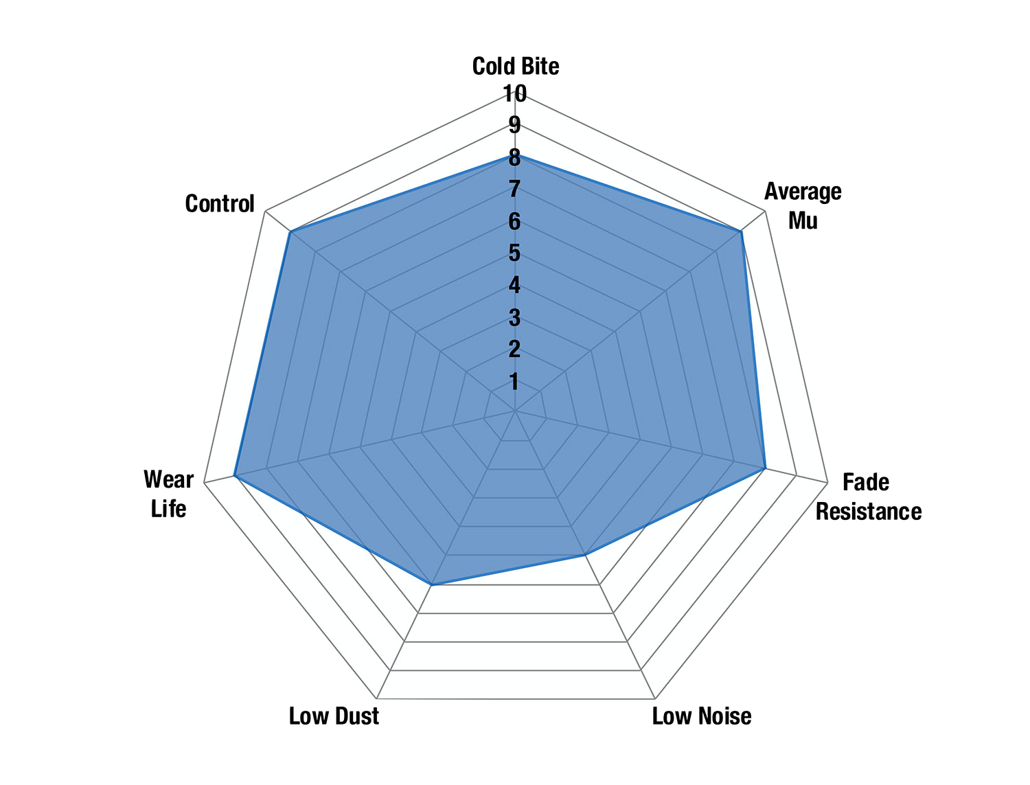 - Hoher Reibungskoeffizient - 0,52μ für maximale Bremsleistung